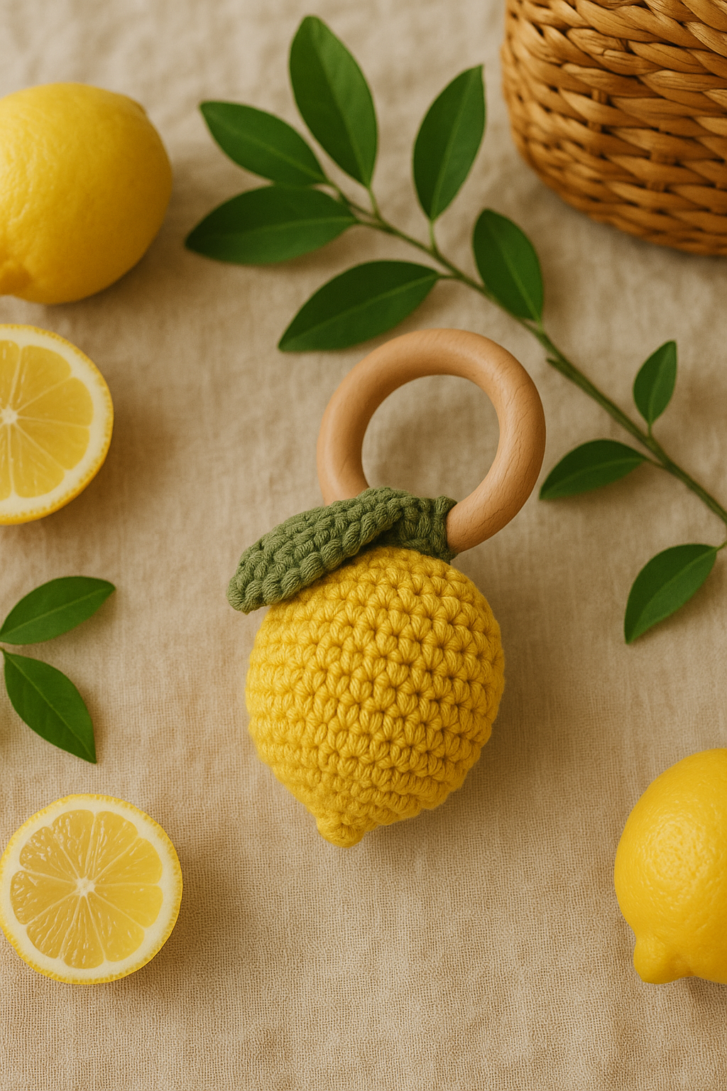 Add a sweet touch to your baby’s playtime with our adorable Lemon Crochet Teething Ring.